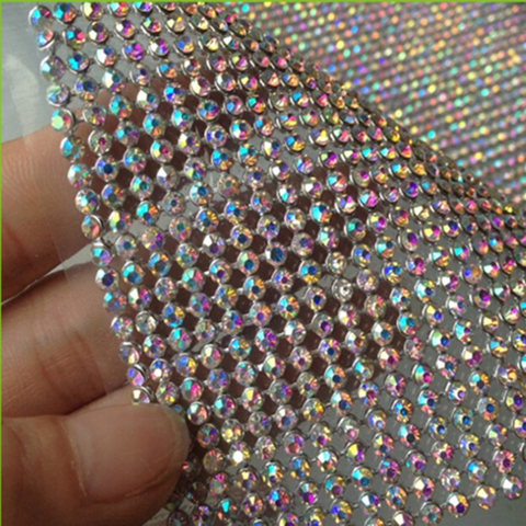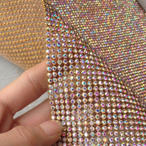 골드 베이스 크리스탈 AB 컬러 핫픽스 크리스탈 라인 석 메쉬 트리밍 롤 45*120 cm